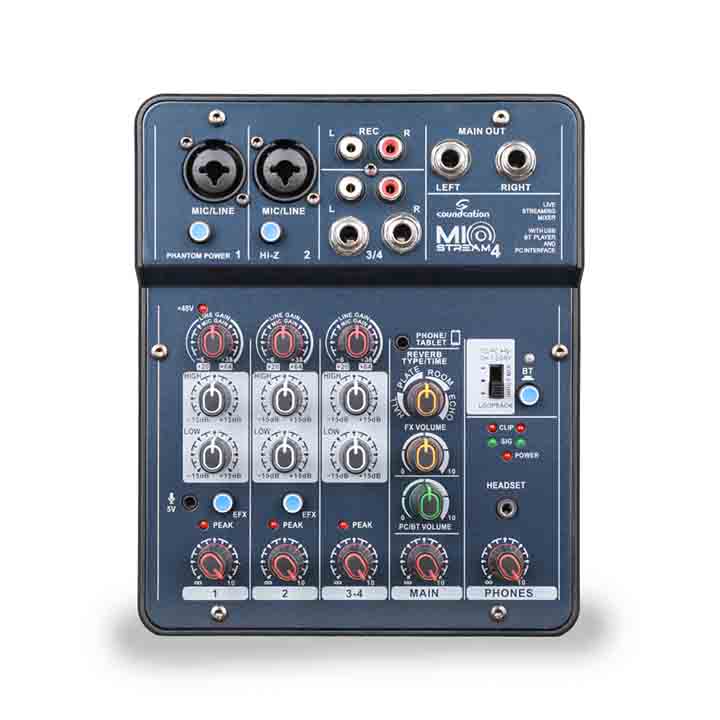 A série MioStream foi projetada para criadores que precisam de uma ferramenta compacta, confiável e extremamente versátil para produção de áudio ao vivo — seja para streaming, podcasts ou transmissões. Se você vai transmitir ao vivo no YouTube, TikTok ou Twitch, o MioStream facilita tudo: basta conectar o seu telemóvel, tablet ou laptop via USB ou Mini-Jack TRRS e gravar instantaneamente uma mixagem de todas as quatro entradas — com efeitos inclusos — sem complicações.